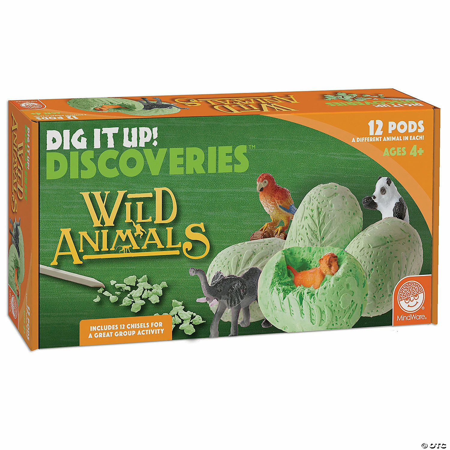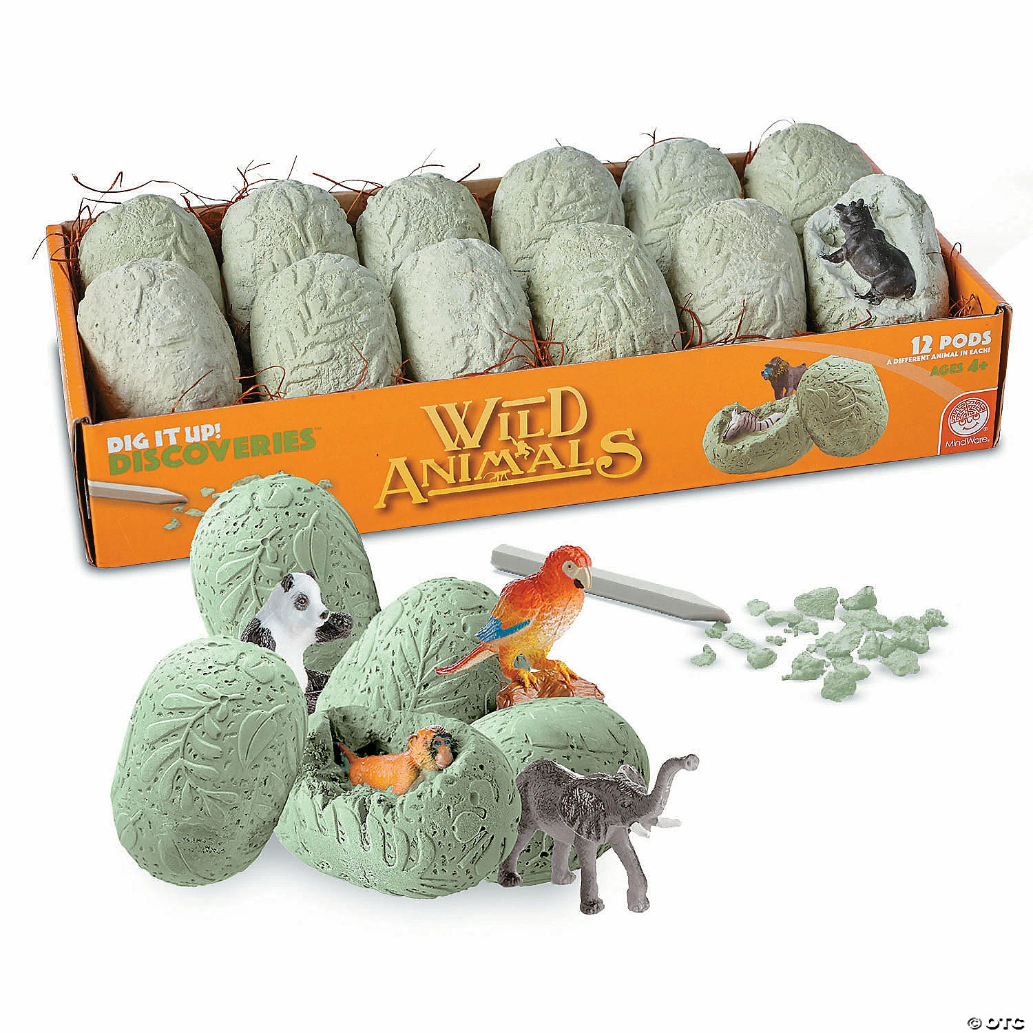 Junior explorers will have a roaring good time as they chisel away the animal pods to discover a chimpanzee, peacock, leopard and more. Use the excavation guide to learn about each fascinating creature. Simply soak the clay pods in water, then carefully chisel away the sedimentary material to reveal the wild animals inside. • Each jungle-print pod contains a different wild animal• Helps promote an early interest in science for kids• The perfect activity for parties and groups • 12 pods, chiseling tool and instructions