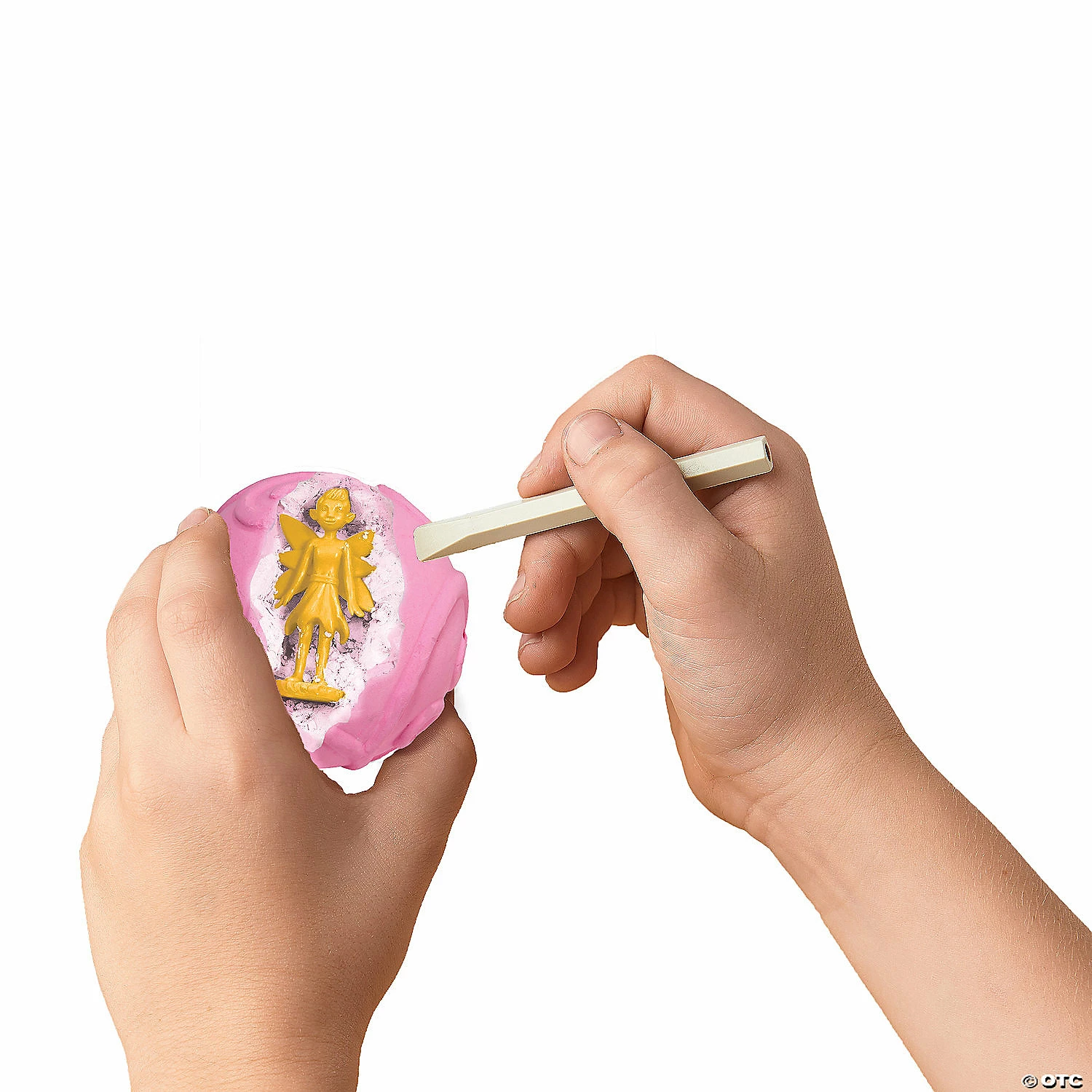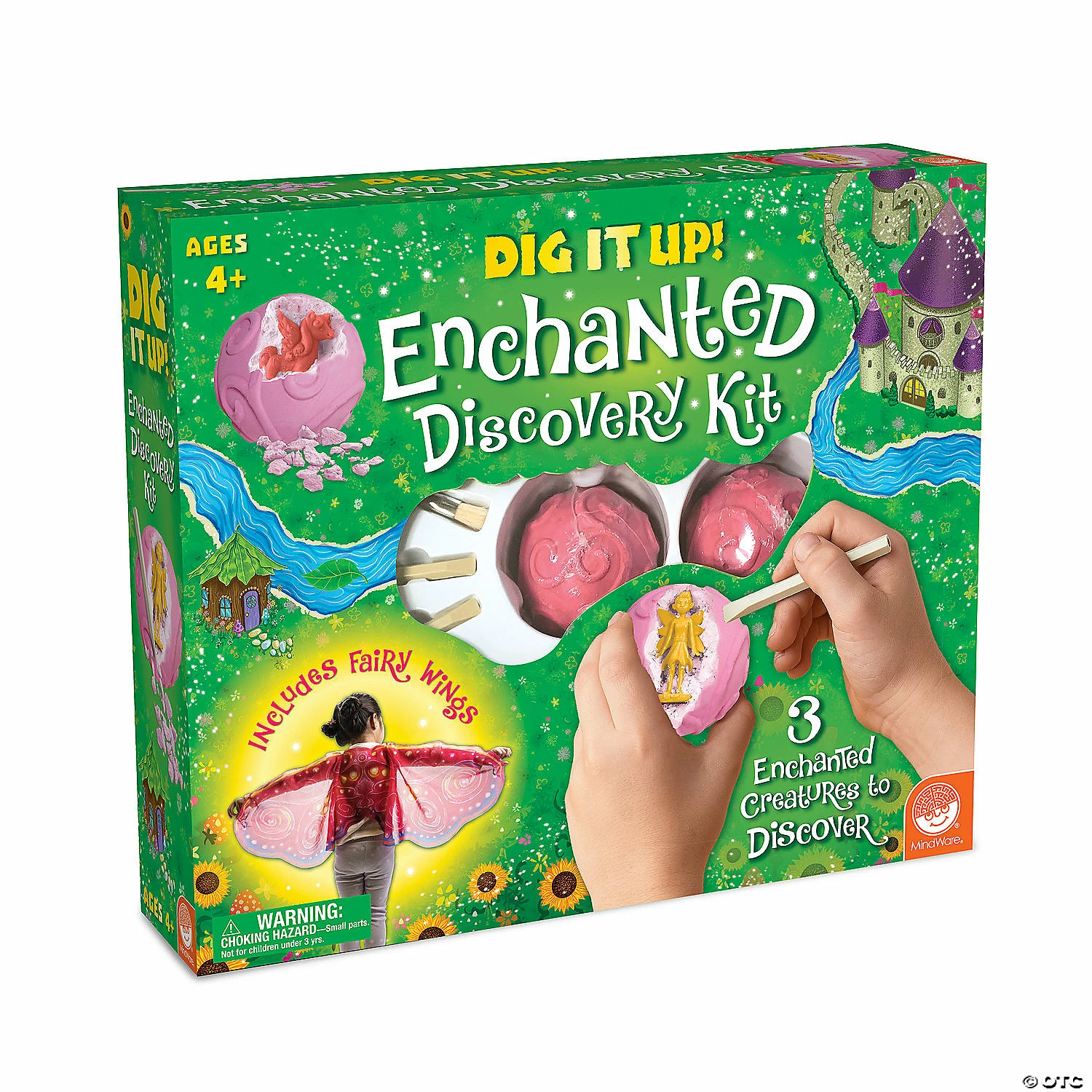 Put on the included fairy wings and flutter into a world of magical discovery! This spellbinding excavation kit features 3 fairy orbs, each with a unique fairy friend or other enchanted creature inside waiting to be set free. Simply soak the pods in water, then carefully chisel away the sedimentary material to reveal the fairies inside! Once excavation is complete, learn about each fairy’s special talents and fun facts about their habitats from the excavation guidebook. Then set your imagination free by using the excavation mat as a colorful background for your new fairy toys to frolic and play on. The digging mat keeps your exploration space clean and later doubles as a colorful play mat ready to unleash hours of imaginative play! • Includes fairy wings, 3 fairy orbs, 2 chisels, 1 brush, 1 excavation mat, 3 story cards, and instruction card• Encourages imaginative play and item classification