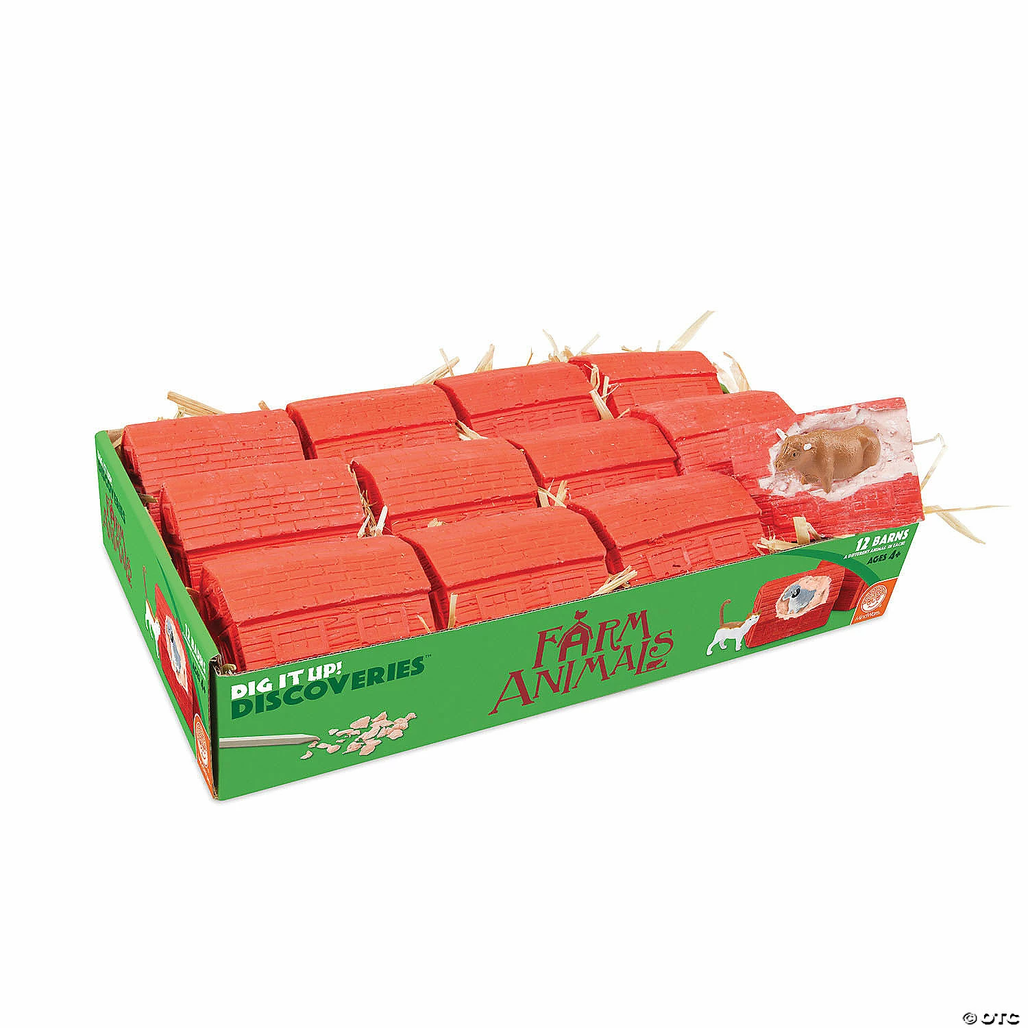 Each of the 12 barns in this kit features a different farm animal to dig out and play with! A wonderful gift for animal lovers and fans of farm life, getting started is easy: just soak your dig project in a bowl or sink, chip away with your tools and uncover the treasures inside. Featuring 12 chisels—one for each barn dig project—this kit makes a fun group activity for birthday parties and other events, or set it out in your classroom as an exciting brain break or indoor recess activity. Included are one dozen individually wrapped barns, each with a chiseling tool and instructions, and an excavation guidebook for learning more about your farm discoveries. • Dig It Up! Farm Discovery contains 12 farm animals to dig out.• Hands-on lesson in science and farm animal facts• 12 chisels allow you to dig with friends, classmates or siblings• Includes 12 barn dig projects, 12 farm animals, 12 chiseling tools, 12 sets of instructions and an excavation guidebook.Age Recommendation: Ages 4 and up