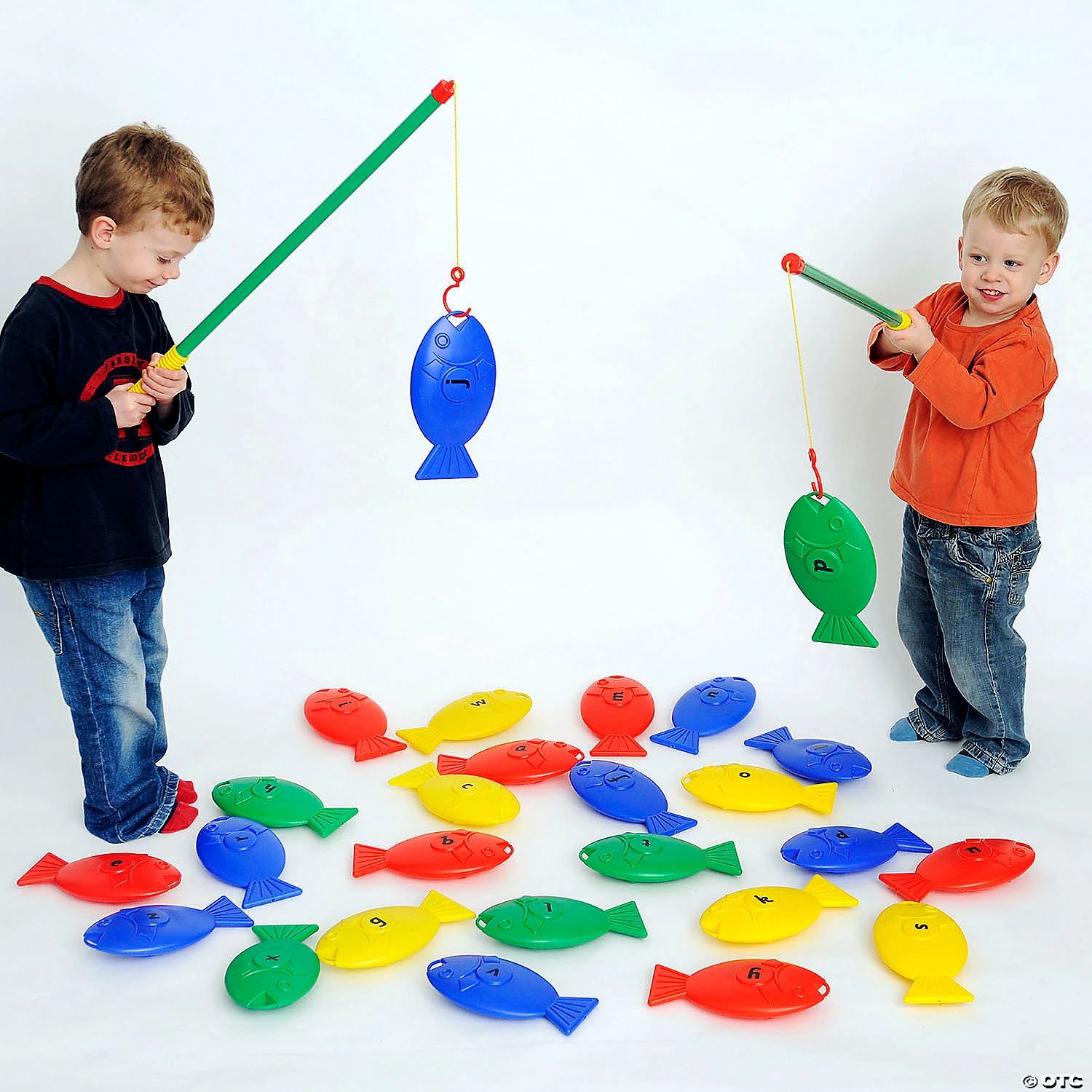 This giant fishing alphabet game is suitable for indoor or outdoor use and can even be used in water. Children will love to hook the fish with their fishing rods which will improve their motor skills, hand-eye co-ordination and letter recognition. This set contains 26 brightly colored, lettered fish and 2 plastic fishing rods together with a net bag for storage. Fish are made from durable HDPE approximately 23cm long and fishing rods are 72cm long. Perfect for phonic recognition! Contents 26 giant fish, 2 fishing rods, storage bag. Age 2+. Special Shipping Information: This item ships separately from other items in your order. This item cannot ship to a P.O. Box. This item may be subject to additional processing days. Item is not eligible for expedited shipping. You may initiate a return for unused items within 30 days, if the items are in original packaging with all original materials included with the shipment.
