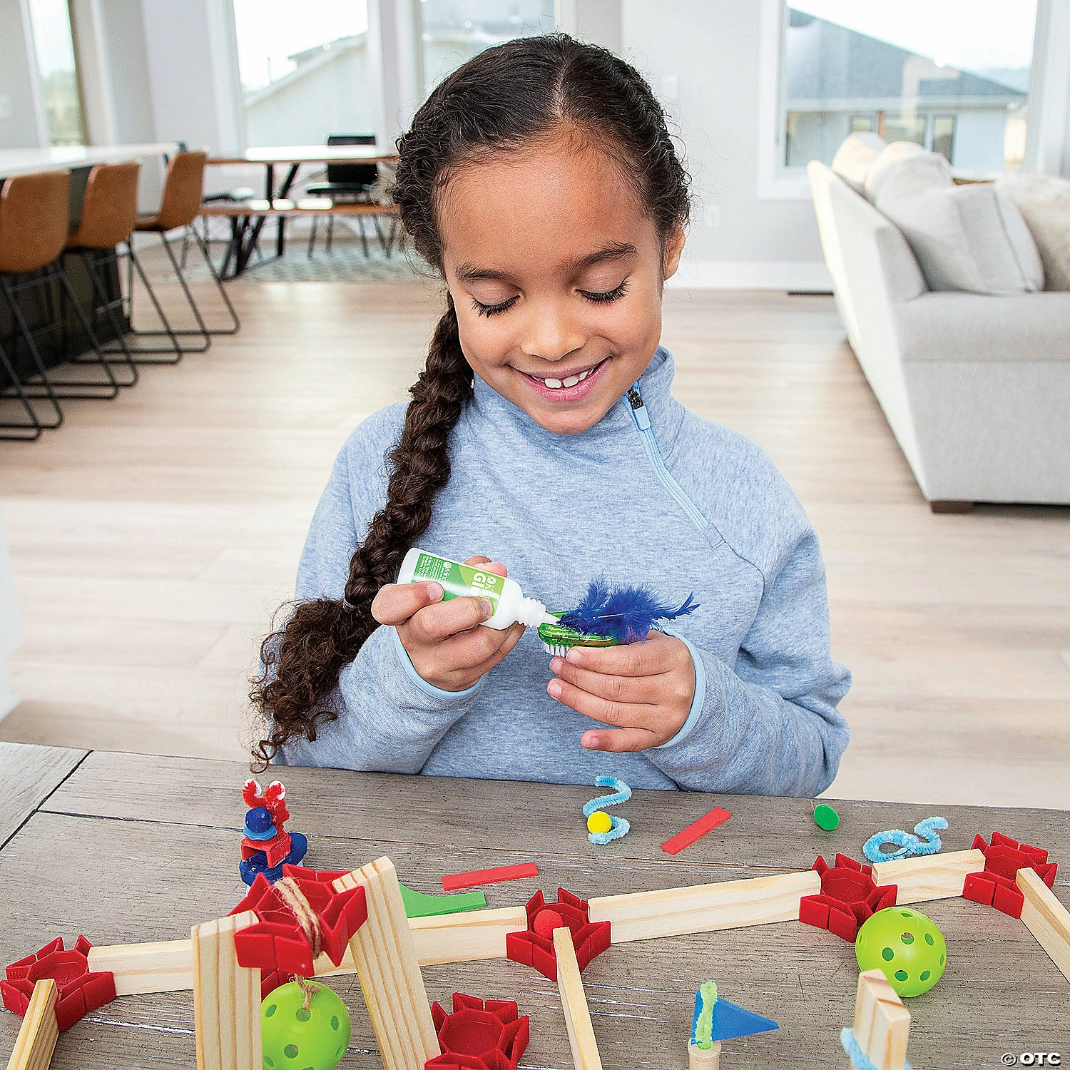 Calling all creative thinkers and curious minds—it’s time to tinker! The KEVA Maker Bot Maze lets you experiment, innovate and create with precision-engineered KEVA planks and a variety of doodads and gizmos! Customize a pair of motorized bots using crafty items found within this one-of-a-kind kit. The more unique looking, the better! Then construct your maze’s tunnels, doorways, passages and obstacles from the planks and connectors, or by gathering things you have around the house. KEVA Maker Bot Maze is the ultimate engineering tool—watch in awe as your personalized bot zooms through your hand-crafted maze! Creativity is the key to becoming a master maker. What will you create?• Strengthens understanding of design, strategizing and proportion • Creativity meets building • 30 KEVA Planks, 8 KEVA half planks, 25 connectors, 2 motorized bots, 6 tumble blocks and 3 bumper balls• Googly eyes, pipe cleaners, feathers, pom-poms, glue dots, tape, string, felt and craft foam