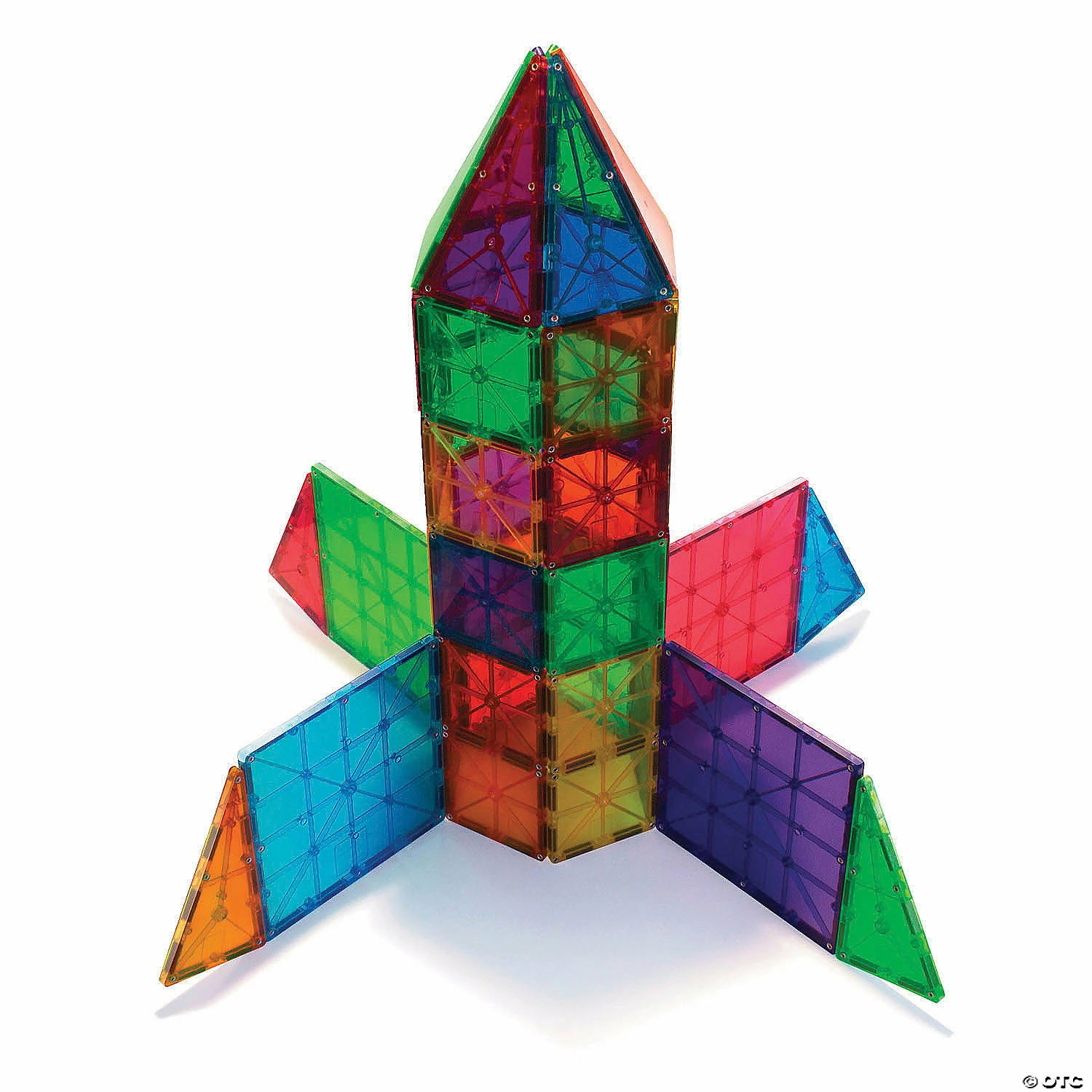 Build amazing structures using the brightly colored magnetic tiles. The original Magna-Tiles® can be used to create structures, but kids can also engage in open play with these translucent, colorful shapes. Make patterns and designs on the floor, or use the magnets and create vertically on the fridge! This family-founded company has a heartfelt mission to help kids access simple, beautiful play as they discover more complex applications for the tiles. This is truly a toy that grows with your child, and provides hours of exploration and fun. From a busy city to a thriving colony on space, there’s no stopping your imagination with this set! Comes with a FREE storage bin only at MindWare!• Magna-Tiles® Set• Encourages free, creative play, develops math science, spatial and tactile skills• Includes 100 tiles; each shape has a base measurement of 3 inches