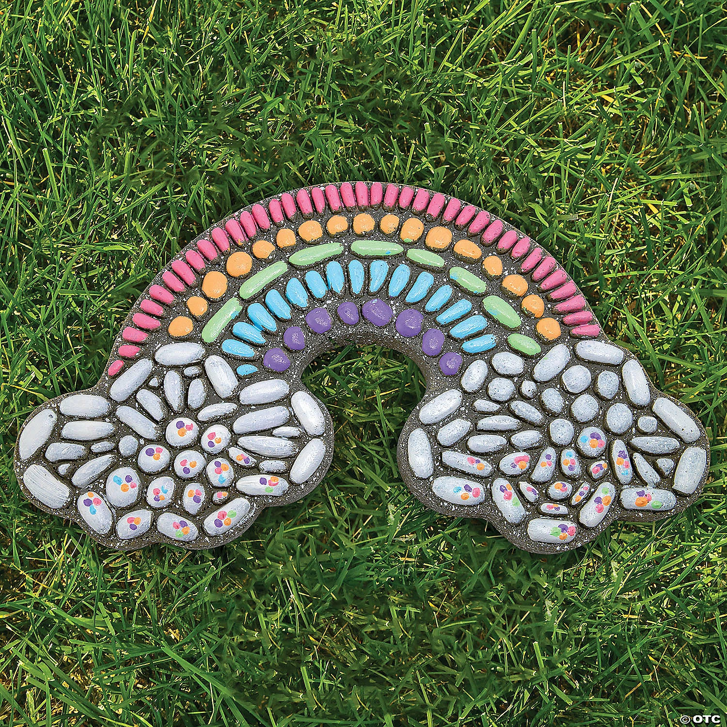 This all-weather stepping stone is ready to paint right out of the box, letting you skip messy cement-mixing and get right to the fun part: decorating and personalizing! A dozen vibrant paints allow for endless creativity—mix, blend and add custom color accents. Once painted, bake the stone in your oven for a long-lasting, weather-resistant finish. Display one stepping stone or make a whole pathway to transform your garden, backyard or patio! Kit includes a 12″ x 6.5″ cement rainbow stepping stone, 12 paints, a paint brush and instructions.• Decorate your outdoor living space• Develops creativity, hand-eye coordination and color mixing skills• Weather-resistant finish once baked• 12″ x 6.5″ cement stepping stone, 12 paints, a paint brush and instructions• Printable color planning template