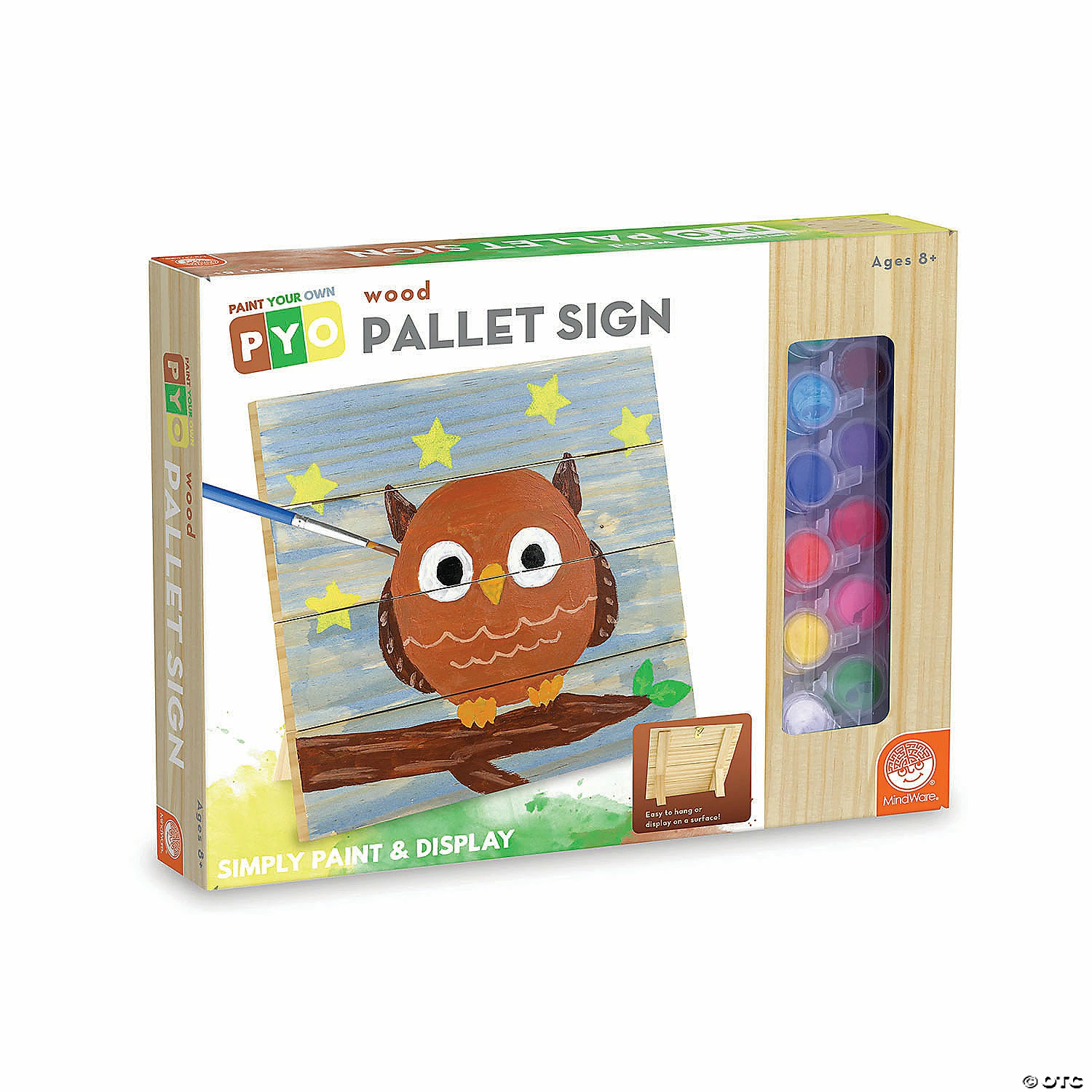 Bring the trend of pallet painting home with this complete kit of high-quality, ready-to-use art materials! Kit includes everything needed to create a custom, rustic painted pallet sign to display on your wall with the attached hanging hook, or on any surface with the easel backing. The included instruction guide teaches a number of fun techniques for customizing the design of your pallet—including instructions on staining the pallet, white washing, chalking in designs, using the alphabet stencils and planning a layout for your pallet sign. Kit comes equipped with a pre-cut, pre-sanded, ready-to-paint 10 x 10” pallet sign. Also included in the kit are 12 paints, 2 paintbrushes, a sponge brush, alphabet stencils and piece of chalk for planning and creating your design.