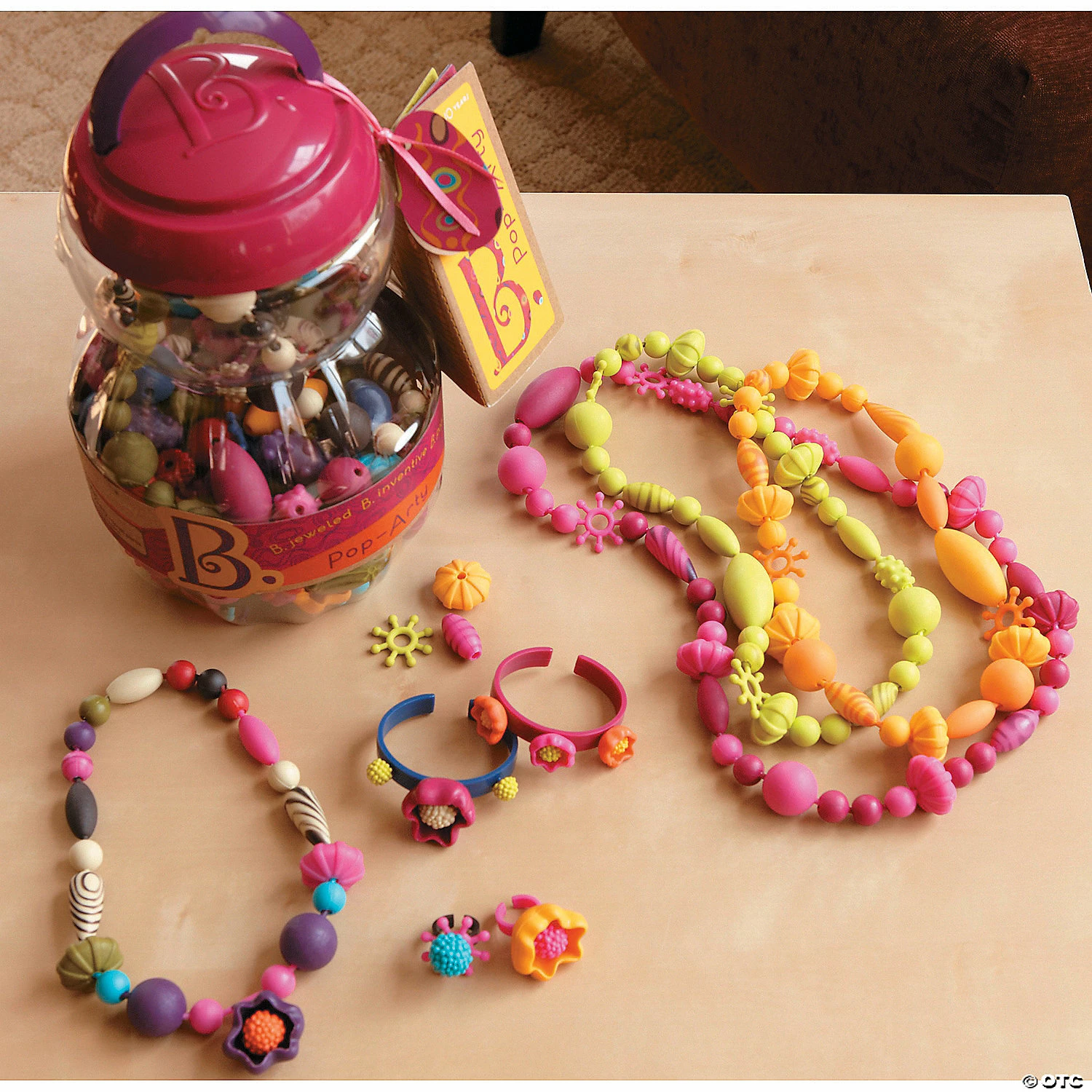 Crafty, unique and fabulous! This jar of beads has everything you need to make the most fantastic works of jewelry art! Make-and-wear jewelry is fast, easy and fun—and with 500 pieces included, you’ll never wear the same thing twice! Earthy tones of magenta, plum purple and yellow green are combined with bright hot pink, sunny yellow, aqua blue and red. You are one-of-a-kind; your jewelry should be too! Impress eyes everywhere you go with the Pop-Arty creative bead kit!• Encourages creativity, fine-motor skills and self-expression• Perfect for parties, car rides and sleepovers • 500 snap-together pieces including 12 rings and 6 cuff bracelets• Storage and travel made easy with adorable canister with handle