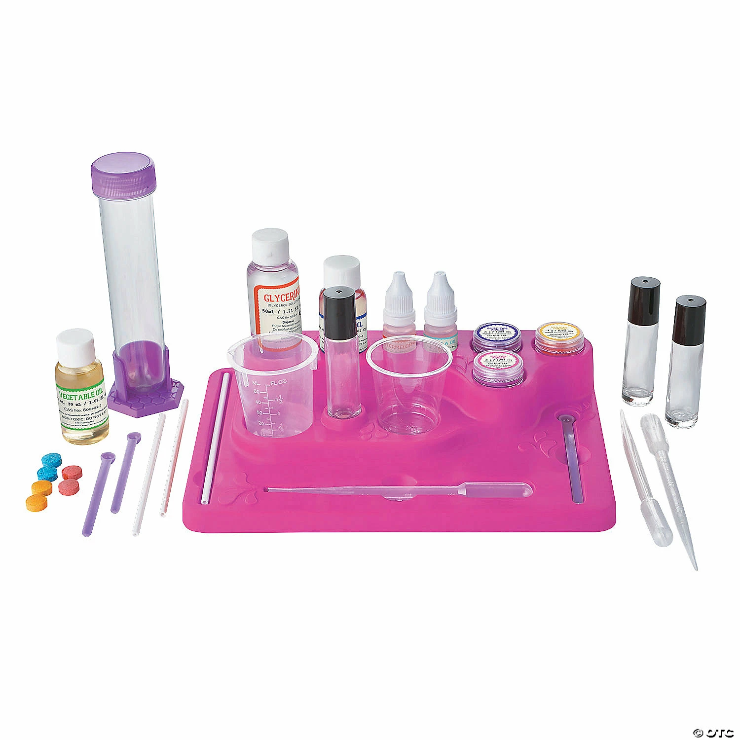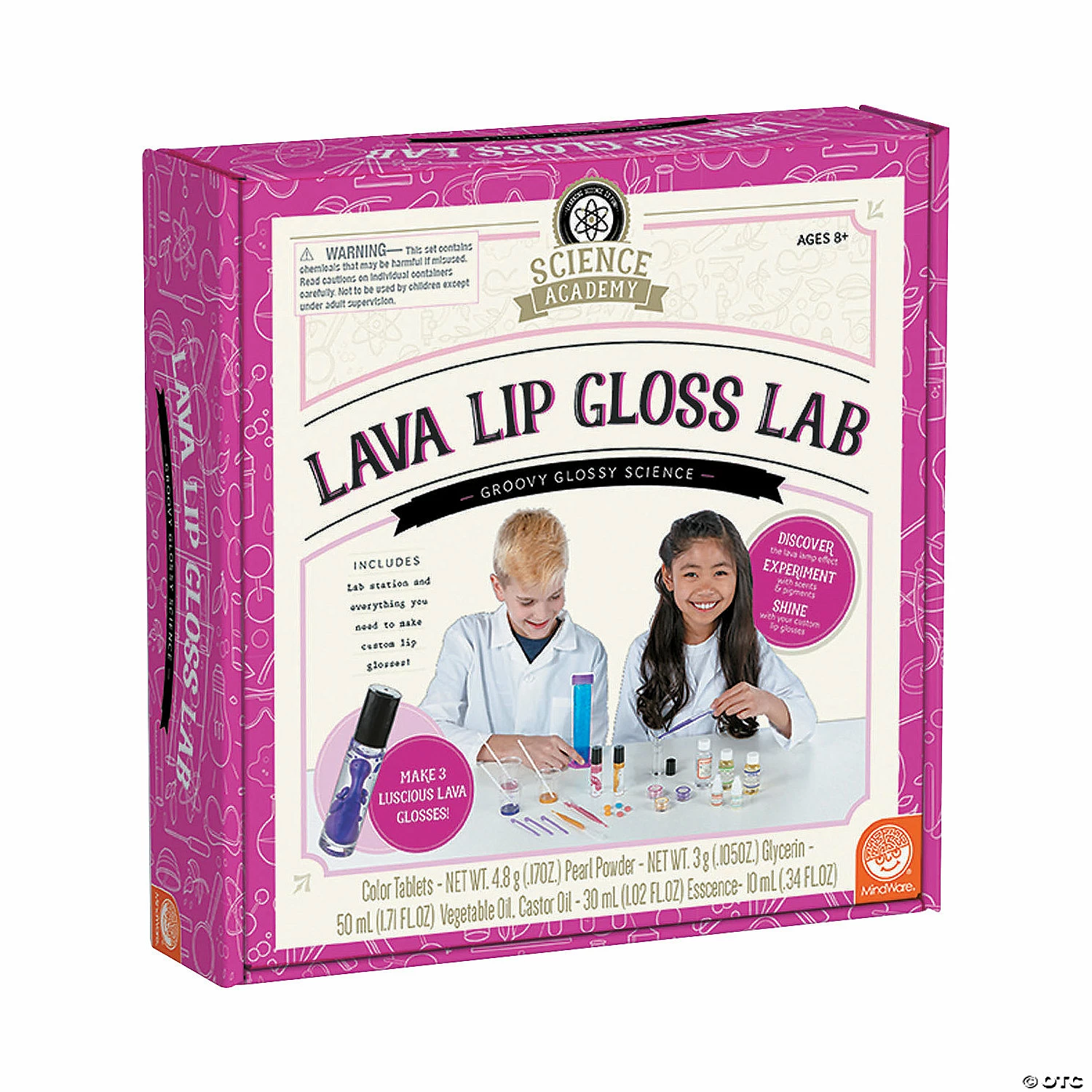 Learn some basics of kinetic chemistry while you make 3 trippy tubes of lava lip gloss! Aspiring chemists will have a blast conducting a test tube lava experiment and observing the effects of different liquid densities. Lava lip glosses can be customized with watermelon and vanilla essential oils, along with pink, purple and gold mica coloring options. Each finished rollerball will deliver an enchanting science show plus smooth, shiny lips. It’s a totally groovy chemistry kit featuring psychedelic science projects for kids!• Create 3 custom tubes of lava lip gloss with this kinetic chemistry set!• Encourages an early interest in chemistry and cosmetic science for kids. • Includes 3 glass rollerball applicators, glycerine, castor oil, beaker, stir sticks, spoons, pipettes, test tube, color tablet, aluminizer, vegetable oil, measuring cup, watermelon and vanilla essential oils, pink, purple and gold mica coloring, and a step-by-step instruction guide.