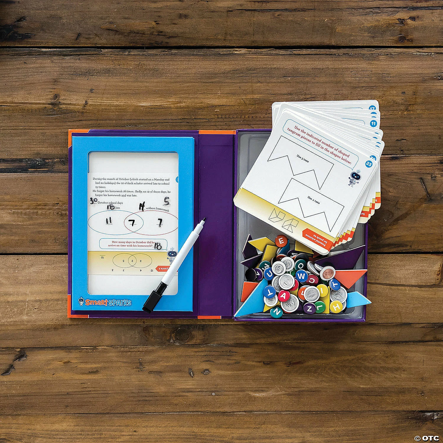 Test their smarts with these brain puzzles! Featuring over 100 magnets, writing screen,dry eraser marker and 50 puzzles, these teacher-created puzzles are great for building vocabulary, practicing logical reasoning, mental math skills and spatial skills . The magnetic box makes these great to take on the go, for at-home learning, part of your brain break stations or indoor recess activities. Let the learning fun commence!• Smart Sparks Brainy Puzzles: Grade 5 offers a fun, teacher-approved way to keep kids learning as they play!• Develops visual recognition, vocabulary and problem-solving• Includes 50 puzzles, 112 magnets, writing screen and dry eraser markerAge Recommendation: Ages 10 and up