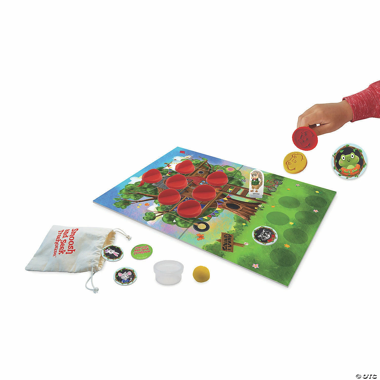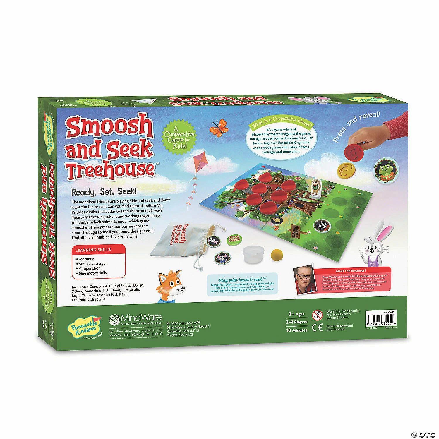 This memory game has a satisfying twist – or should we say smoosh! In Smoosh and Seek Treehouse, kids work together to remember where each of the hide and seek players are by squishing the tokens into Smoosh Dough! Can they find all the woodland animals before Mr. Prickles climbs up the ladder? This cooperative game has all players working together to win!• A cooperative memory game with an extra-fun squish!• Kids learn memory, simple strategy, cooperation and fine-motor skills• Cooperative games help kids learn to play well together. Build your collection with more favorites like Race to the Treasure, Feed the Woozle and more!• Includes 1 game board, 1 tub of smoosh dough, 7 dough smooshers, game tokens, Mr. Prickles with stand, 1 drawstring bag and instructions