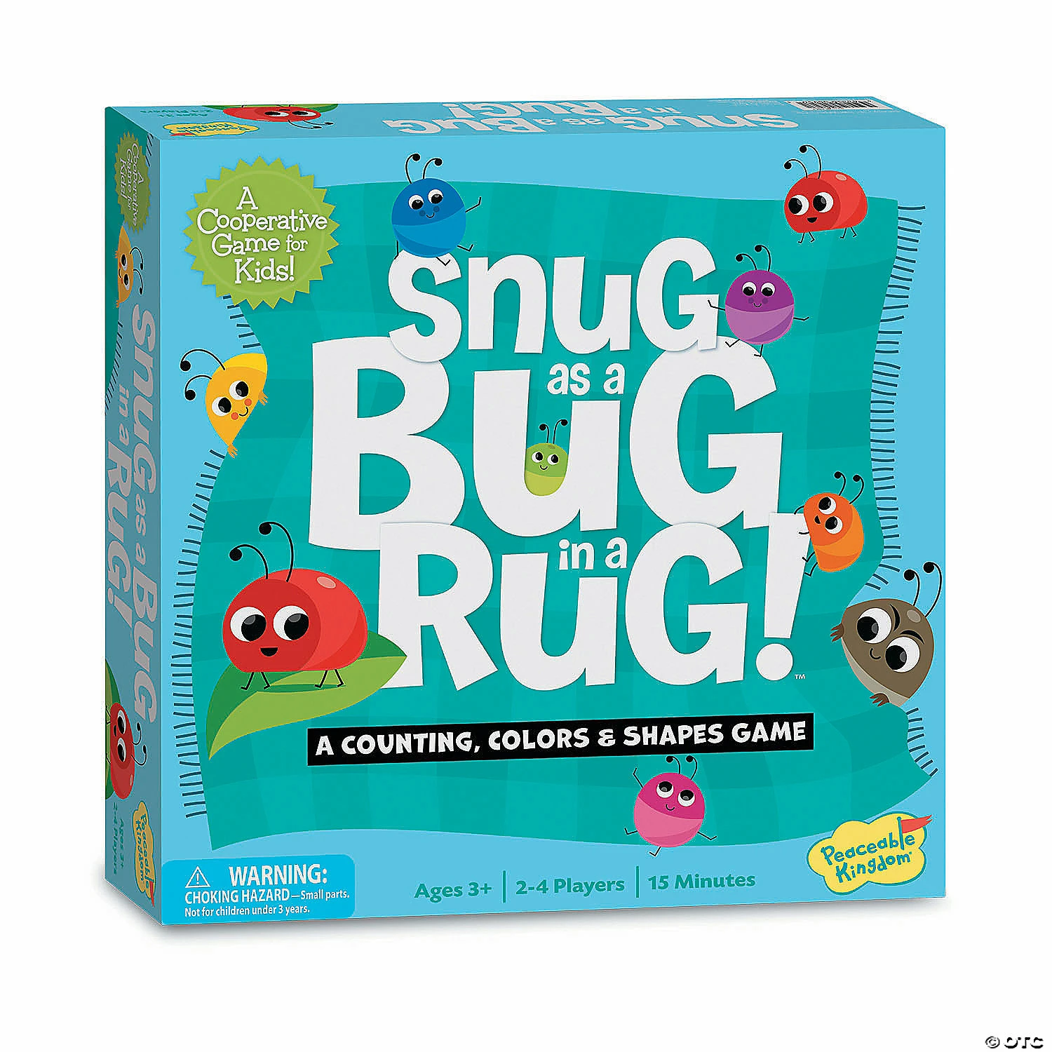 Get all the little colorful bugs under the rug before the 3 stink bugs stink up the place! Watch closely and make those matches! Spin the spinner and find a matching bug. Then slip it under the rug. Take turns spinning and matching and try to get all the bugs under the rug before 3 stink bugs are sitting on top. Each level adds more challenge. Work together to find those matches, and you all win! Unlike most games Snug as a Bug in a Rug encourages kids to work together to keep the stink bugs off the rug. This way, kids work together, learn together and they help each other! INCLUDES: 1 board game with built-in-spinner, 24 colorful bugs, 3 stink bugs, 1 die and instructions for 3 game levels.