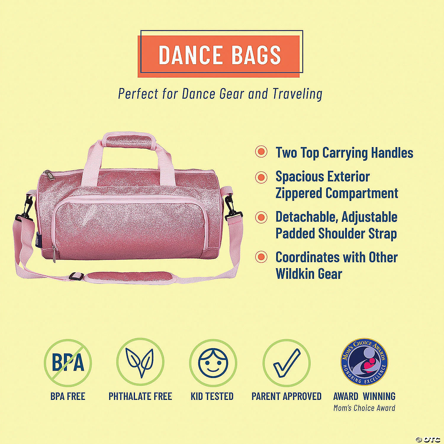 Wildkin’s dance bag is the perfect accessory for ballet, dance, cheerleading, gymnastics, or even a weekend at grandma’s! Its roomy design easily fits everything your child needs, while being lightweight enough to ensure that they don’t get weighed down. Whether they’re packing their slippers and tutu for ballet class, or cleats and shin guards for soccer practice, this bag stores it all with ease. Special Shipping Information: This item ships separately from other items in your order. This item cannot ship to a P.O. Box. This item may be subject to additional processing days. ITEM IS NOT ELIGIBLE FOR EXPEDITED SHIPPING